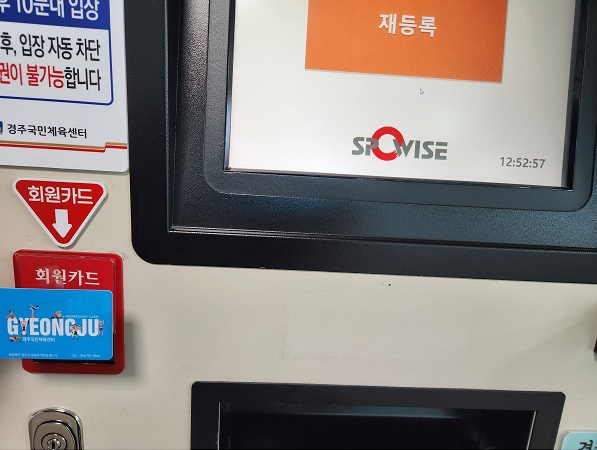 1. 회원카드를 그림과 같이 리더기에 인식합니다.